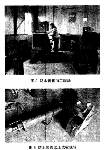 與現(xiàn)有技術(shù)相比,本次研究發(fā)明的防水套管止水效果好,首次使用在非金屬管穿底板上,并且效果顯著。防水套管加工現(xiàn)場(chǎng)如圖2所示。
